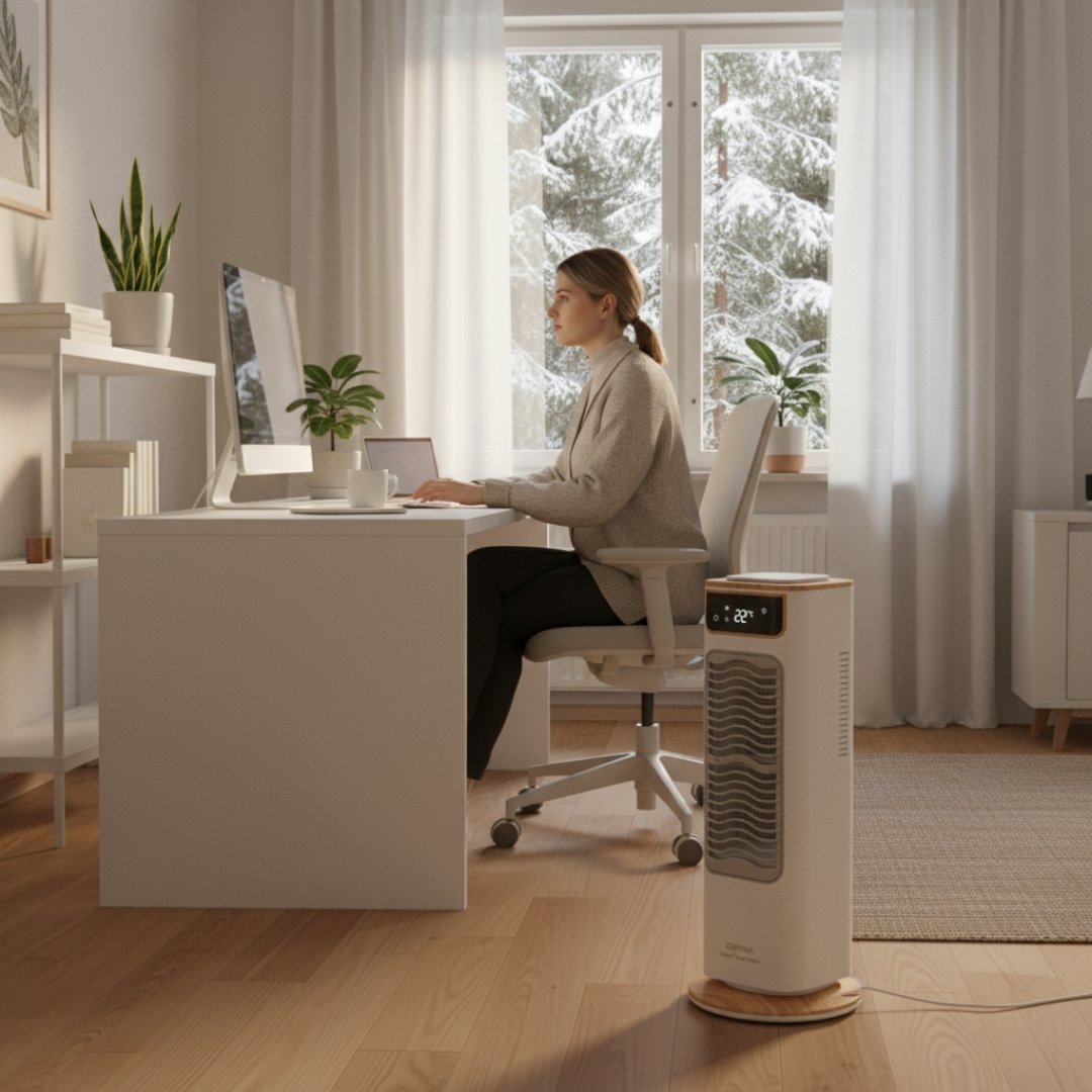 Tuo kotiisi välitöntä ja miellyttävää lämpöä Zorynxa-keraamisella tornilämmittimellä. Tämä tehokas ja energiapihi lämmitin on suunniteltu Suomen viileisiin olosuhteisiin, yhdistäen modernin teknologian ja puhtaan, minimalistisen muotoilun. Nauti tasaisesta lämmöstä ja hiljaisesta toiminnasta missä tahansa huoneessa.